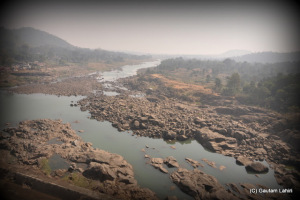 As you cross the dam by foot, the scenery on either side come into full view; the two sides were pretty contrasting..the great volume of water on one side is released in a controlled manner stays almost stagnant with the gentle wind making little waves on top splashing against the wall. The other side is outrageously rugged can be seen by the lack of water over the rough terrain of rocky outcrops.