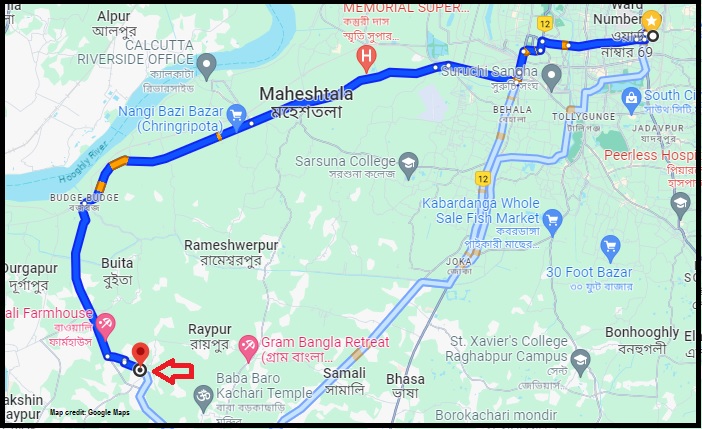 | Distance from Ballygunge, Kolkata to Rajbari Bawali | 32 Kms (one way)+ 10 kms (outskirts) |