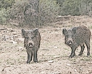 A blur in which a light spotted yellow four-legged mammal, something that looked like an overgrown cat descended at a furious speed. It landed on the clearing, pinned one of the little boars, took it by its neck, a death cry from the boar echoed through the area around the lodge.