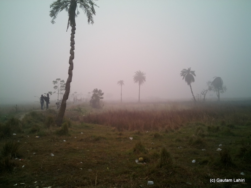 After about a ten minutes bone-chilling travel braving the cold wind coming through the slits of the vehicle, we got down at Raghunathpur market and walked about a mile and a half. This year the cold has been gripping. The intense crispness that hugged amidst the mist was evident when we were greeted with a dense fog preventing us to see anything beyond six feet.